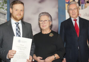 Dr. Martin Tschöke erhielt am 4. Dezember im Rahmen der Absolventenfeier der Fakultät für Betriebswirtschaft den mit 1.000 Euro dotierte Professor Herbert Jacob-Preis. Frau Elke Weber-Braun, Vorsitzende der Universitäts-Gesellschaft, überrreichte den Preis. Ausgezeichnet wurde Dr. Tschökes hervorragende Dissertation im Bereich der Logistik (Truck Scheduling with Fixed Outbound Departure Times).
