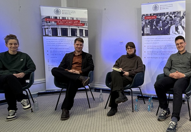 Mit dieser Titelfrage eröffnete Moderatorin Astrid Dose am 12.06.2024 die Veranstaltung „Junges Podium“ der Universitäts-Gesellschaft Hamburg e.V..